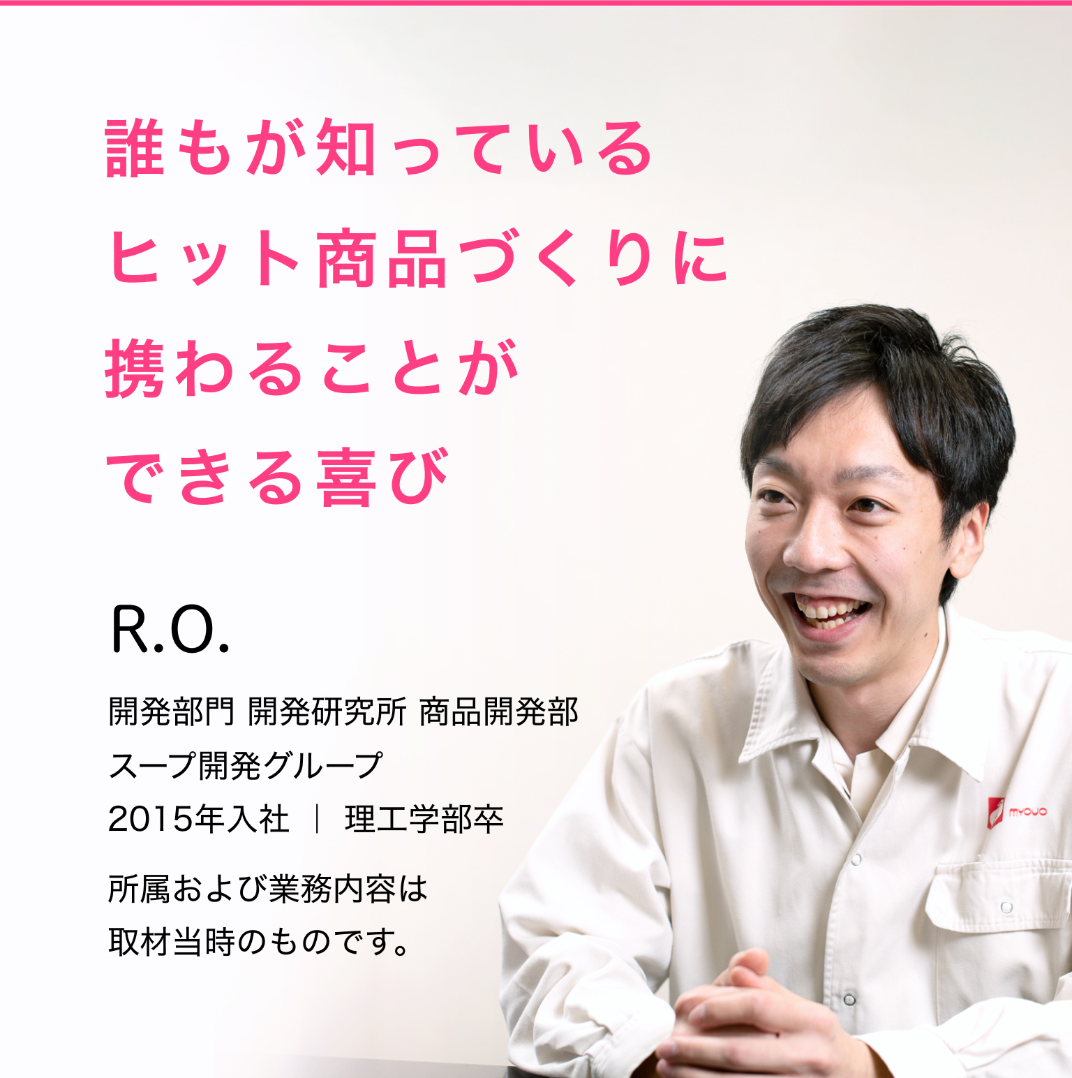 「長く愛される商品を作りたい。」「小さい子どもから、大人まで美味しく食べられる商品を作りたい。」明星食品の先輩方の熱量の高さに触れるにつれ、私の中で、数ある会社の中の1社から、絶対入りたい唯一の会社に変わっていきました。