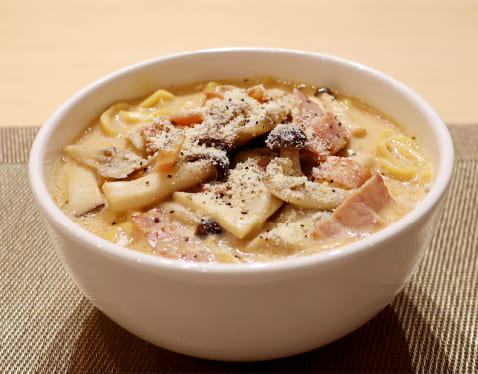 コシのあるしっかりとした食感の麺とねっとりカルボが相性抜群!